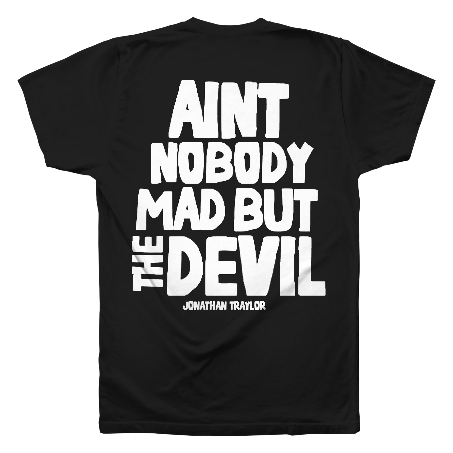 Black t-shirt featuring "Ain't Nobody Mad But The Devil." Features puff print on back. 100% cotton.
